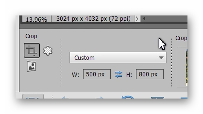 Choose Custom. Then type the pixel dimensions you want and resolution. Then drag out the crop tool over the photo. See image below.