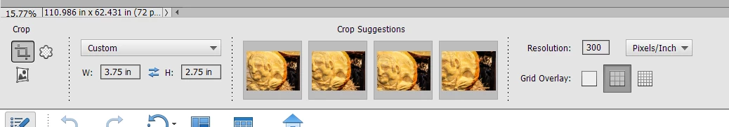 I have about 50 photos that I need to crop to 3.75 in x 2,75 in, 300 dpi. Is there a way to do this without entering the dimensions and dpi for every photo? PSE 2020 Windows 10