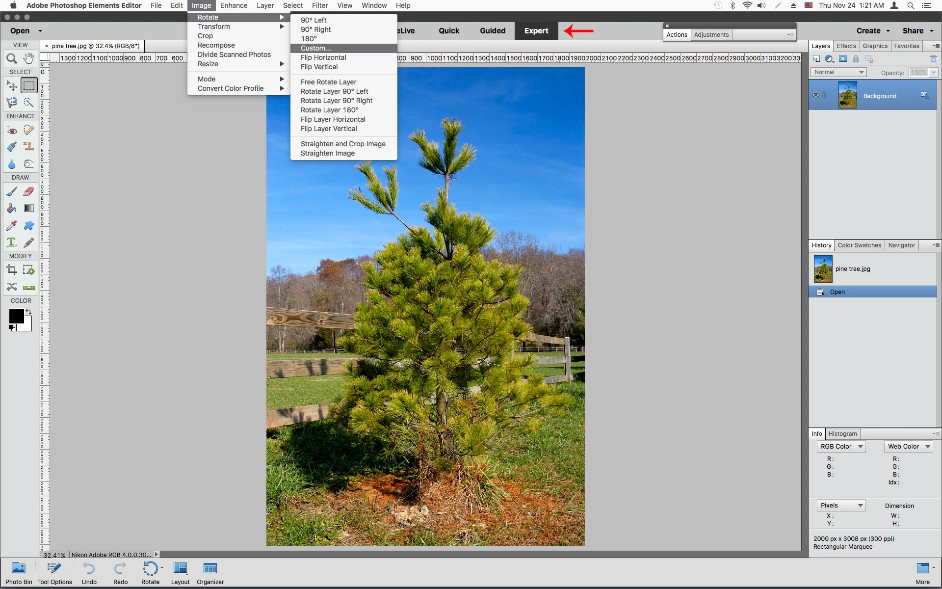 I needed to rotate a pix (JPG) using the custom rotate feature and it is greyed out. I've used it before and it worked fine. Is the program corrupted? What is the fix?