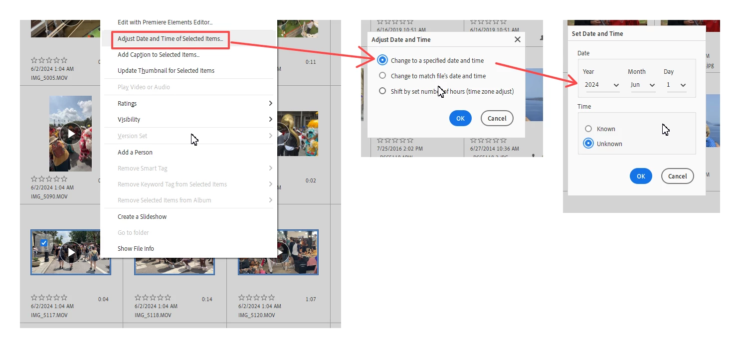 Eigentlich ist es ganz einfach: Das Datum ist das Foto/Video Erstellungsdatum, also der Zeitpunkt, wo es entstanden ist (1). Keine Operation (Copy, Move, Rename, Edit) dürfte dieses Datum jemals ändern, und es sollte dasjenige sein, welches der Organizer bei Sortierung nach Neueste oder Älteste verwendet.