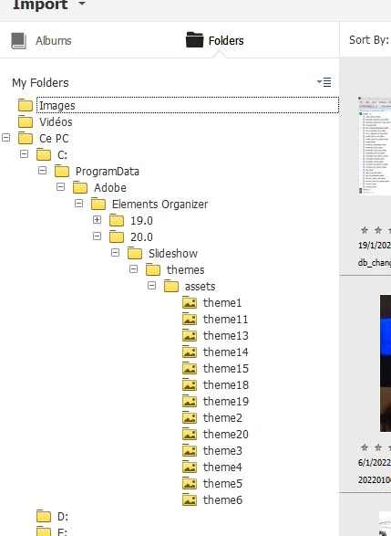 message d'erreur "Eléments Organizer : Aucun thème trouvé. Veuillez réinstaller l'application pour utiliser la fonction de diaporama". copie écran en pièce jointe