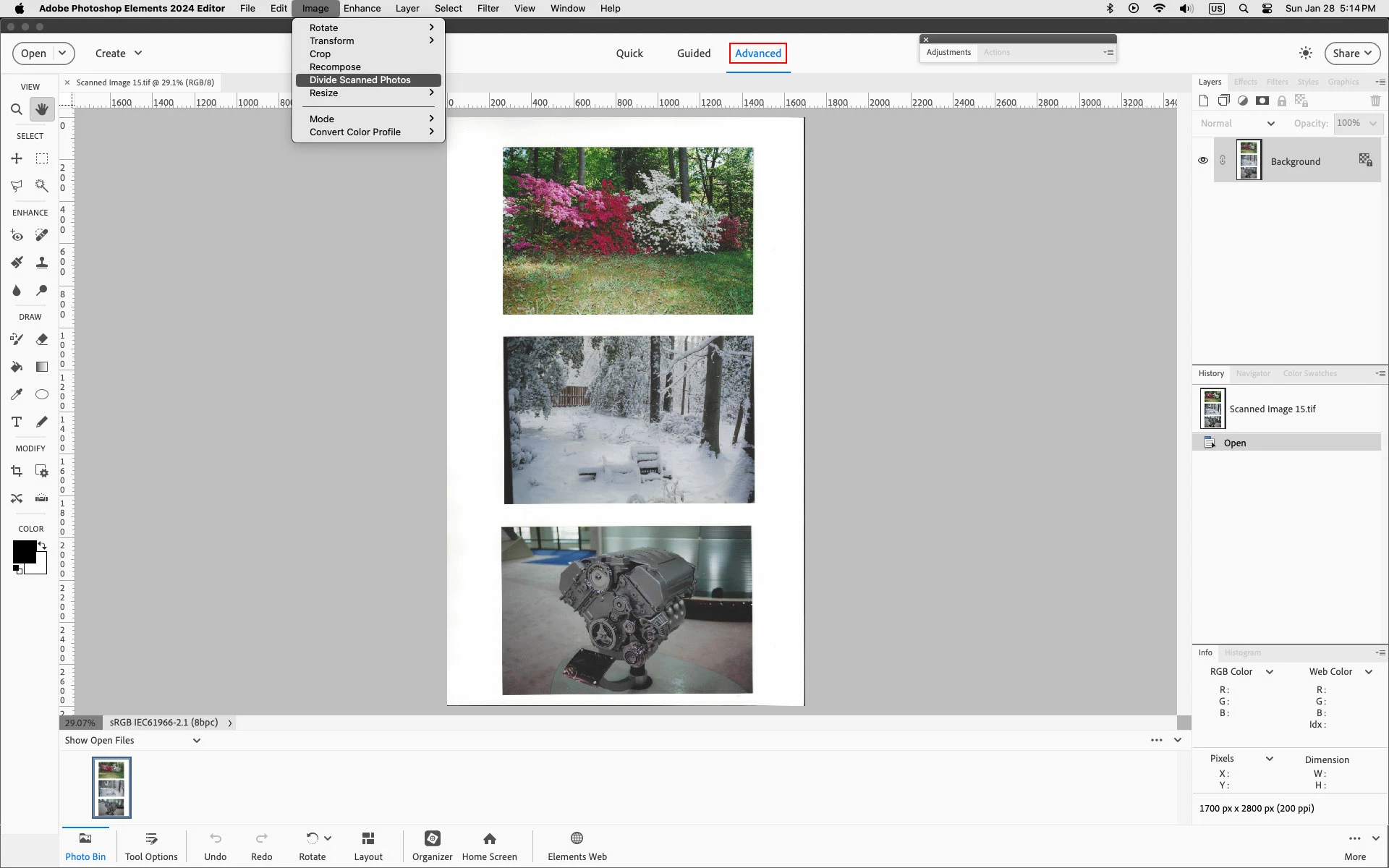 Divide scanned photos in PS Elements 2024