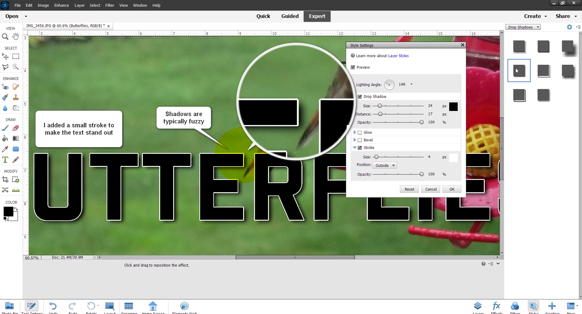 Hi, I'm trying to do a white drop shadow. or really a light gray color one. and the lighter i try to go on the shadow the more it disapears no matter the opasity. I have it set at 100% in the style settings and as well as in the actual layer opasity slider bar. I don't know what the problem is. It's like the opasity is stuck and not working in the layer style effects. can someone help? I have elements 2022 thank you! I also am on a PC.
