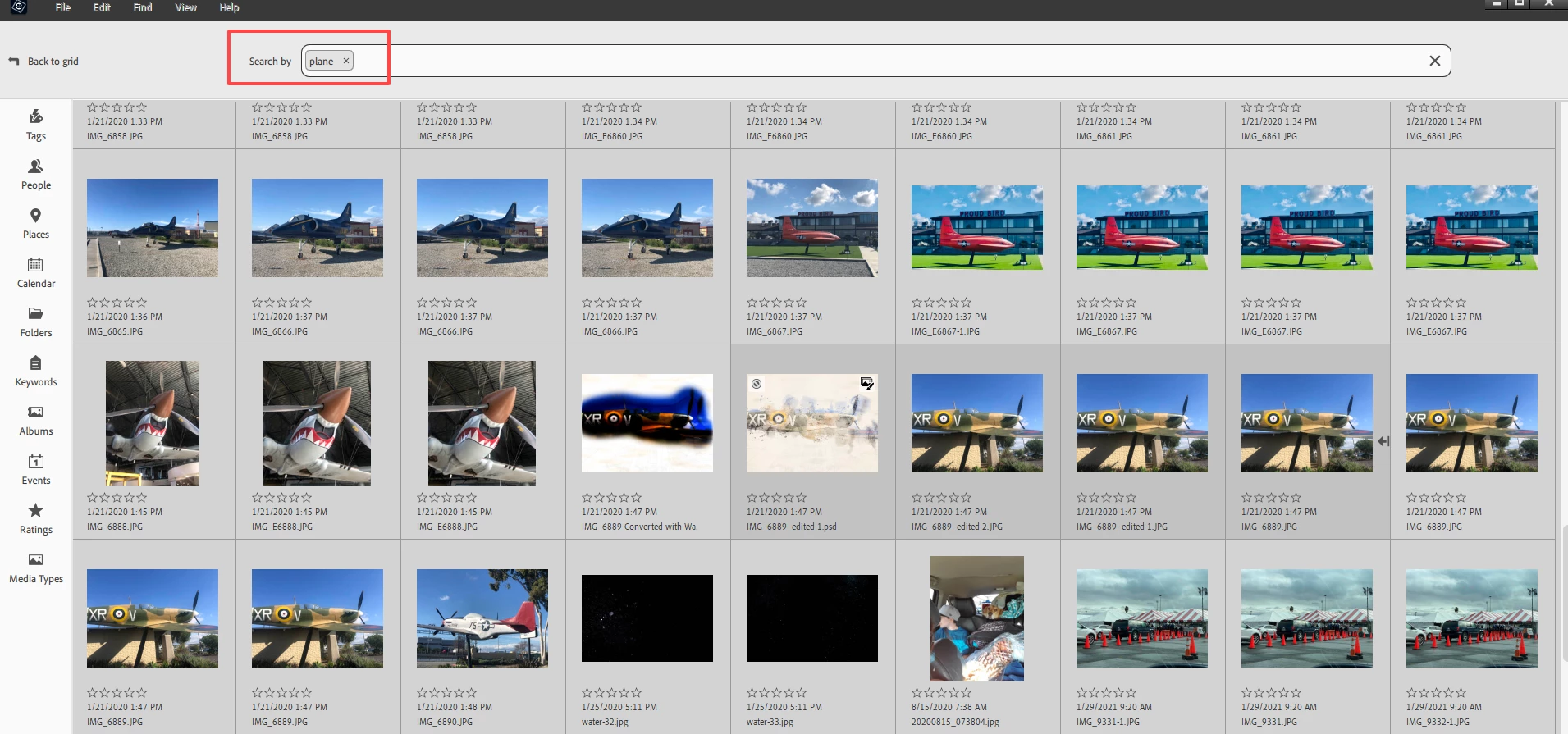 I assigned the keyword tag "plane" to several photos one at a time. Instead of one tag assigned to several photos, I now have multiple instances of the "plane" tag, each assigned to one photo. How did this happen and how can I assign all the photos to one "plane" keyword tag and remove all the duplicates?