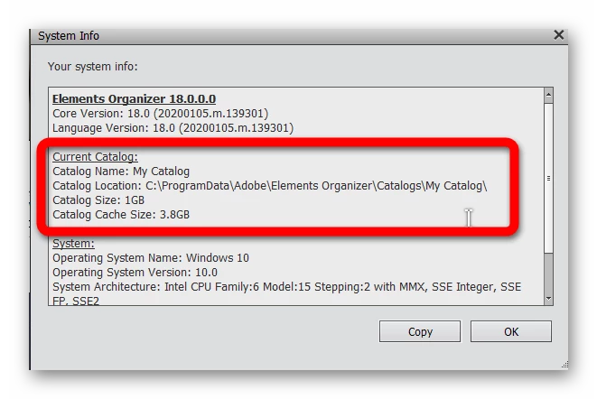 In any event, it is possible to convert your most up-to-date 2019 catalog again so that all of your data remains intact. Do you still have 2019 installed on your machine? If so, launch Elements 2019 and open the catalog you want to convert and use in 2020 and go to the Help>System Info screen. (It may take a while to load.) This will tell you the name and location of your catalog: