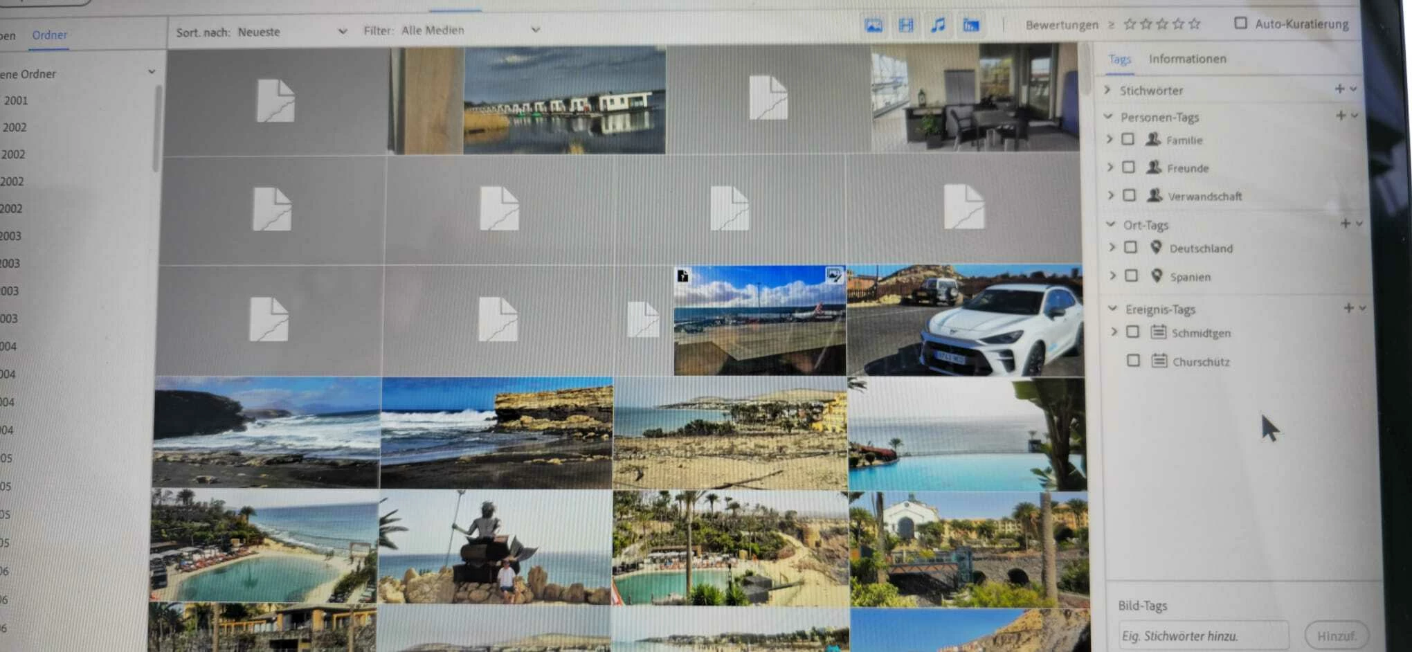 Einzelne Fotos werden im Organizer nur grau dargestellt