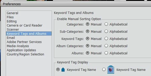 I recently updated to Elements 2019 and the Keyword Tags panel places new and existing keywords tags, cats and subcats in erratic ways. I tried to change the Preferences for Tags and Albums from all alphabetical to all manual or a mixture as suggested in the online User Guide and nothing was changed. It refused to allow me to move things around manually. As an example, in the Keyword Panel, under a "Family" category I have 2 items near the top of the list (call them 2018 A & 2018 B) and I added a new 2018 C and Elements place it down below a Jxxx keyword. There a multiple examples of this irrationality.