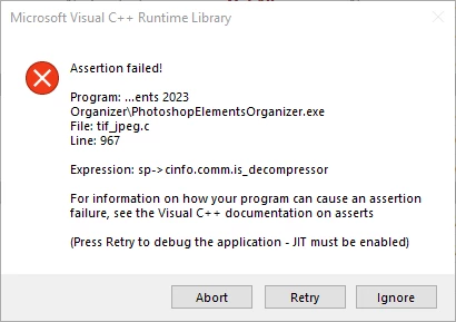 When I open Photoshop Elements with one of my catalogs I get the following message. If I try to run Optimize or Repair the my computer freezes!