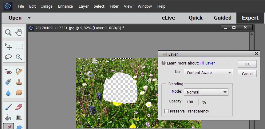 element 11- fill layer.contents aware