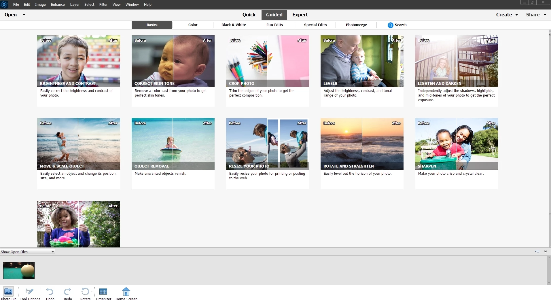 I am trying the trial verion of Elemetns 2023. Up until now I have been using Elements 11 where in Guided Mode all the tools are very conveniently in a panel on the right side of the image i am editing. Is 2023 I have to continually return to that idiot page where all the tools are shown in groups with a before/after slider. How can I place the list of tool to the side of the image I am editing?