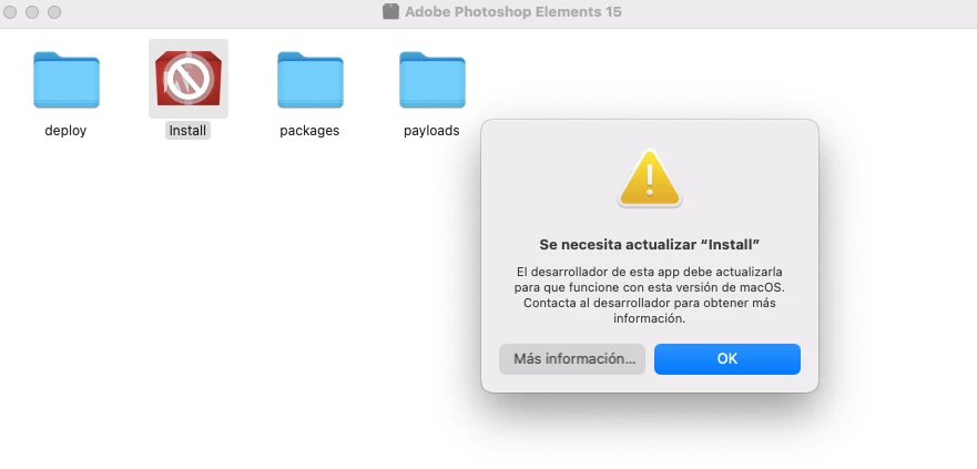 Hi, i bought in CD version the Adobe elements 15. My computer has no CD Reader so i registered it online and was working perfectly. I updated my MAcbook i tried to download it from my adobe account online but when i open it, it gives me an error. Says i need to update "install". "the developer needs to update this app so it is compatible with the macOS version".