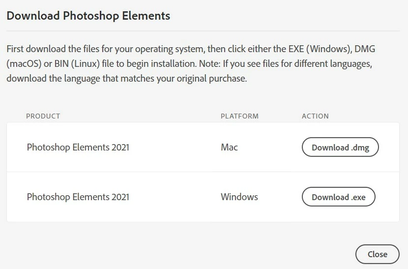 My problem is that when I went into my purchase history on Adobe to reinstall PE15, it only shows a download for Windows.