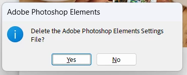 3. A pop-up message will appear asking, "Delete the Adobe Photoshop settings file?". Click Yes.