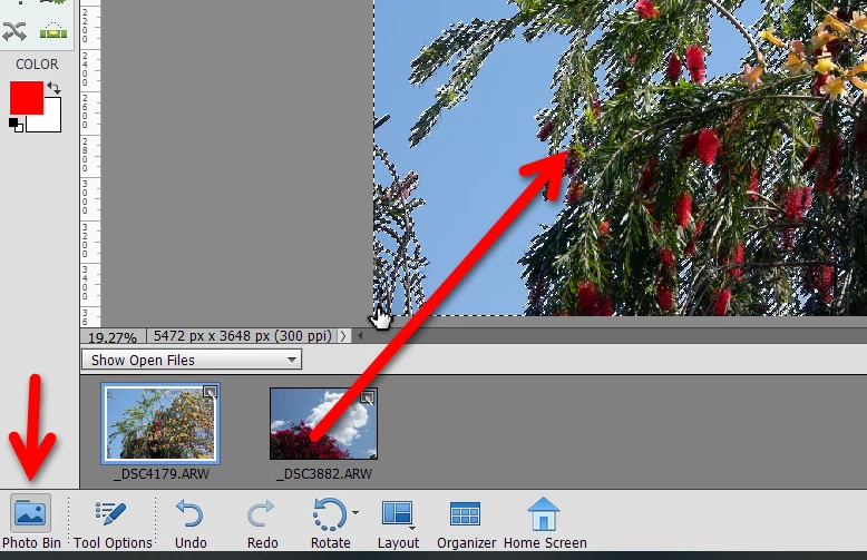 How (step by step) do you replace sky around trees in Elements 2019?
