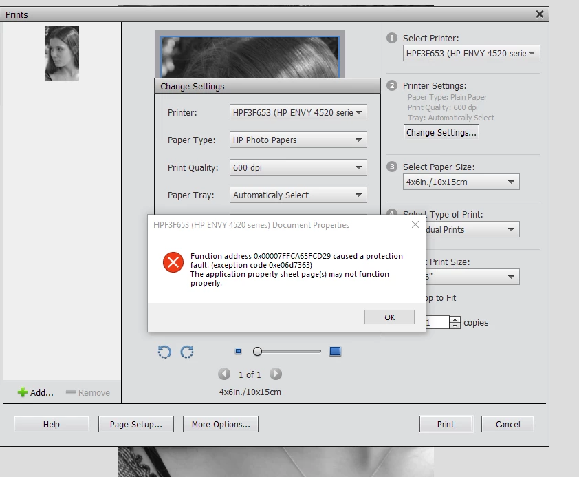 The other is connected via USB. The Photoshop Elements on the USB one will only print black/white on paper. If I go to Change Settings and select photo paper then print still prints in black/white and the ink will whipe off and is not absorbed.