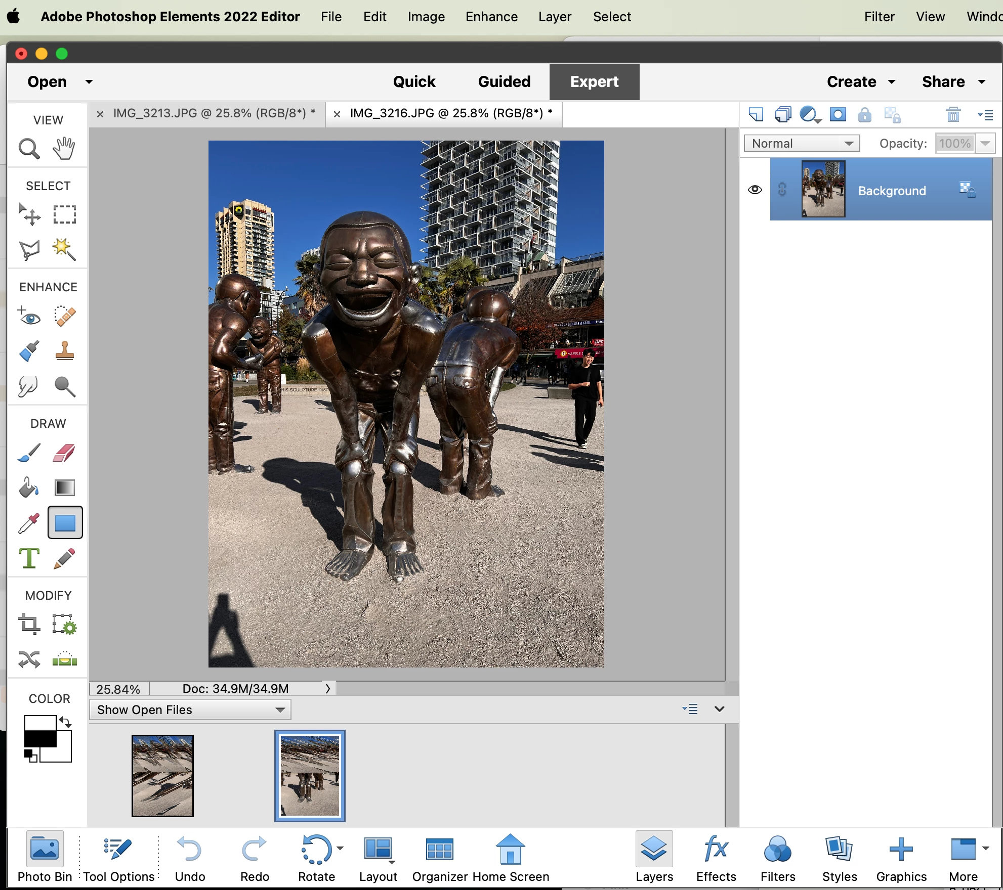 Photos in Photo Bin are distorted if more than one photo is opened. This makes it very difficult to work with the files.