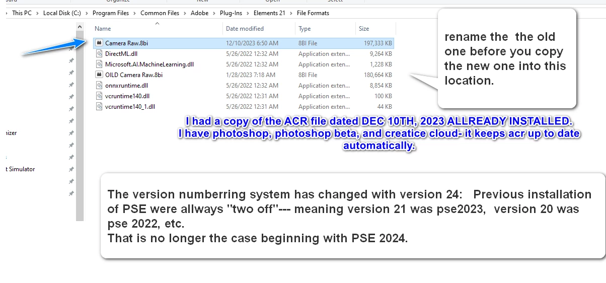 Anyone know of any workarounds that will get version 16.1 of the Camera Raw plugin "Verified", or to get it to work with Elements 23?