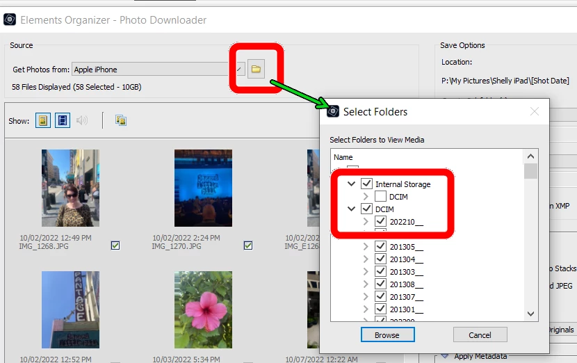 I thought this was only an iPhone problem, but others with cameras have reported it. If you click on the APD Browse Folders icon, do you see a folder tree with duplicate folders? In my screenshot below, you will see I have two DCIM folders. If you have something similar, uncheck one of the folders and this should avoid the duplicates.