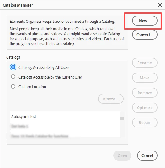 If you have any sub-folders with long alphanumeric names, they will contain auto backups. Double-click on the catalog.pse24db file and the backup catalog should open.