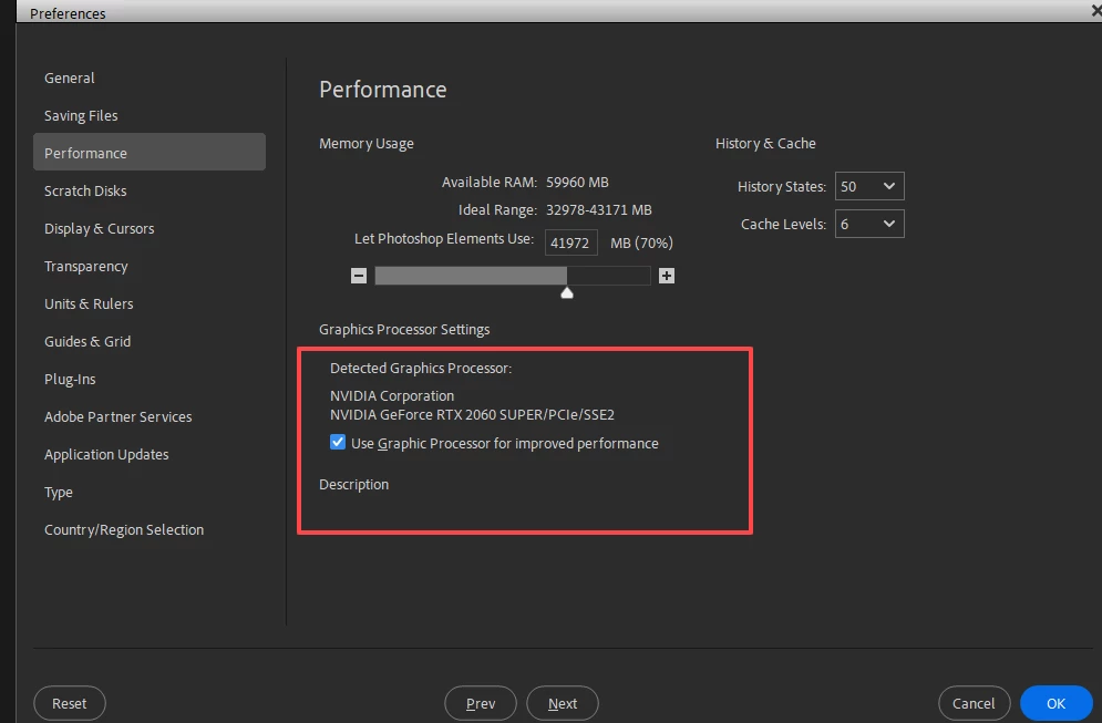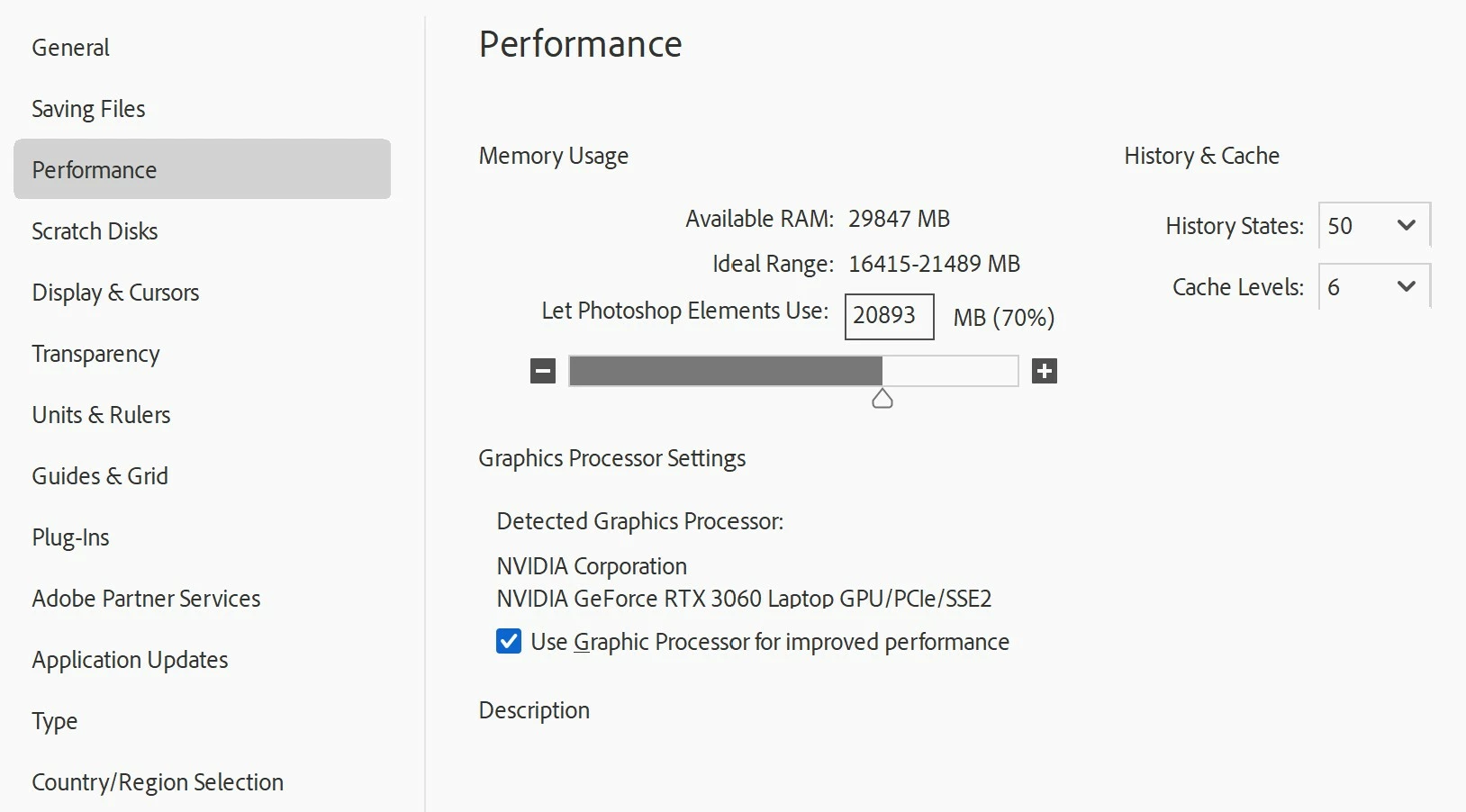 • Show us a screenshot of the Preferences>Performance dialog.  Try changing the setting of the  Graphics Processor box.  If you have more than one GPU, disable the Intel integrated GPU.