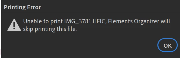 I recently upgraded to Photoshop Elements 2025. It won't print HEIC pictures.