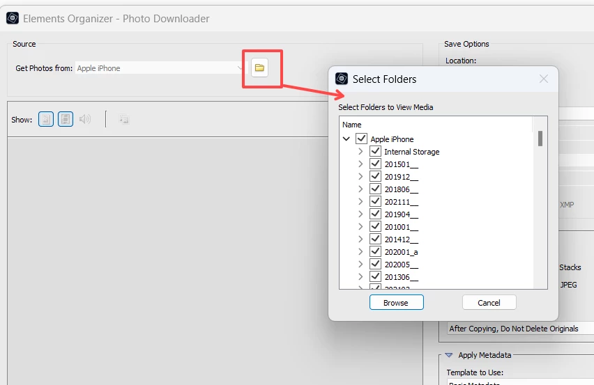 I have always transfered pictures from my iPhone to Elements on my PC by using USB cable and File-GetPhotos-From Camera - since Beginning of November, the above prompt shows up and I can not transfer any pictures. Can anyone help me? I tried searching the site, I have tried each USB port on my PC, my settings on my phone have not changed....