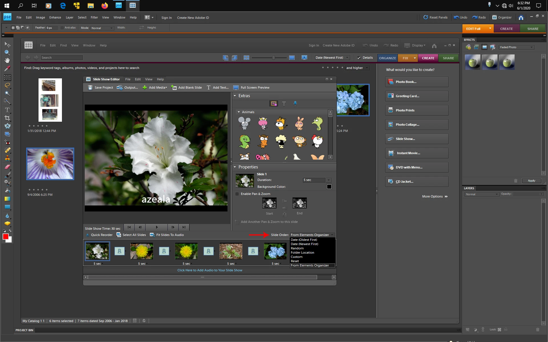 Elements 8 sorting photos for slide show