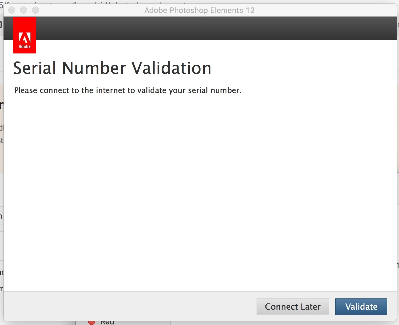I am re-downloading Elements 12 on my Macbook. I installed it in 2015 and un-installed it around 2018 (before the cloud service change). It ran fine during this time. I have a hard-disc and the serial number is valid/registered on my account however I am facing problems with offline activation. When I go to redownload it, I get the notification to sign in. I sign in and get a window that says serial number verificationn. All it says is "please connect to the internet to validate serial number". No other links. My computer is connected to my wifi which is working though. The validate button doesnt do anything. The connect later button closes the window and nothing happens. I would like to use my valid and paid for software.