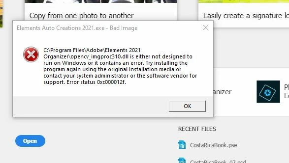 Elements Auto creations 2021.exe bad image