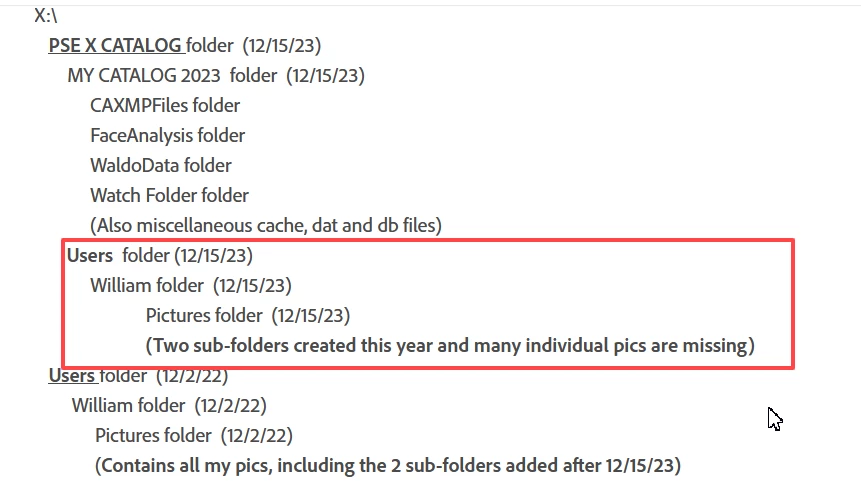 I’m running Elements 21 on Windows 11, and I just noticed that I have 2 sets of most of my pictures. A complete set is located at X:\Users\William\Pictures, and most of these pics are also located at X:\PSE X CATALOG\Users\