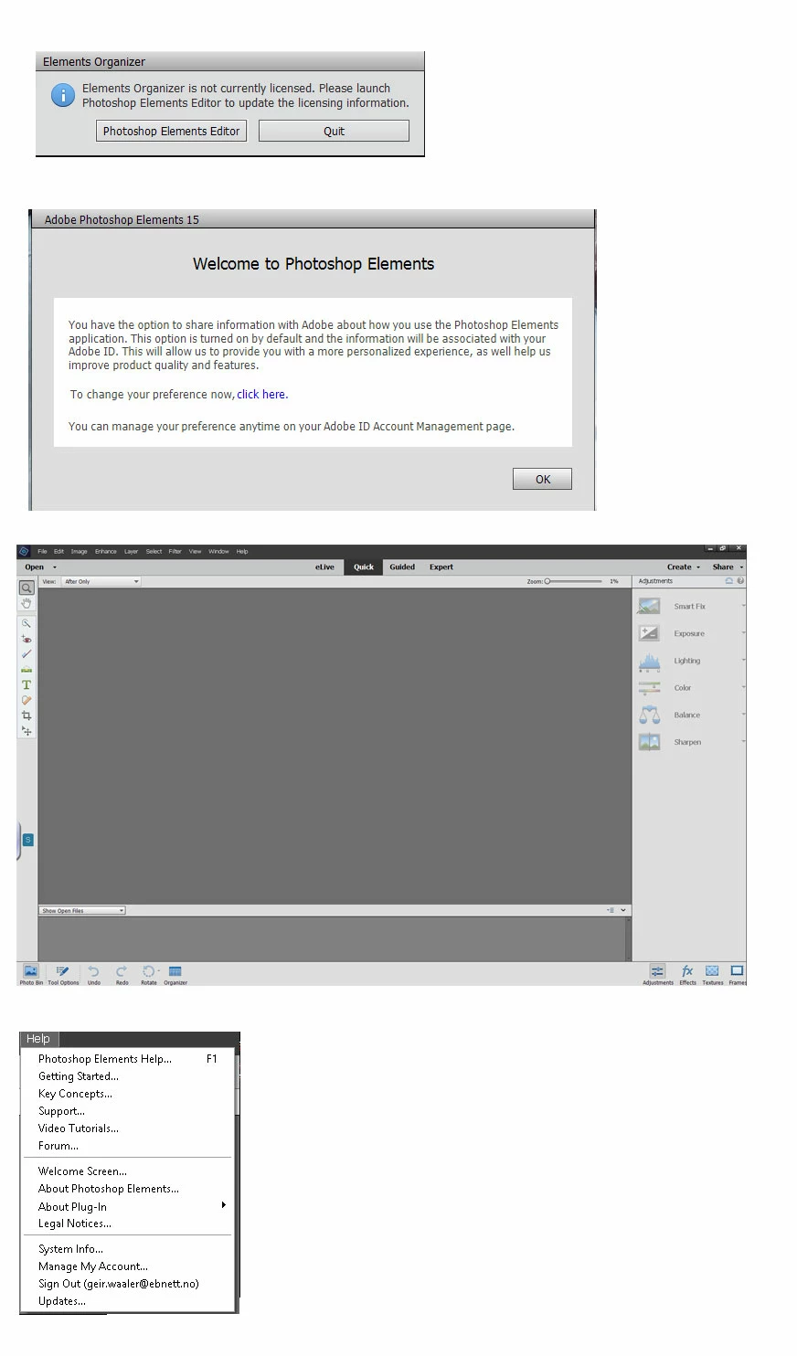Elements Organizer (15) is currently not licensed - what to do?