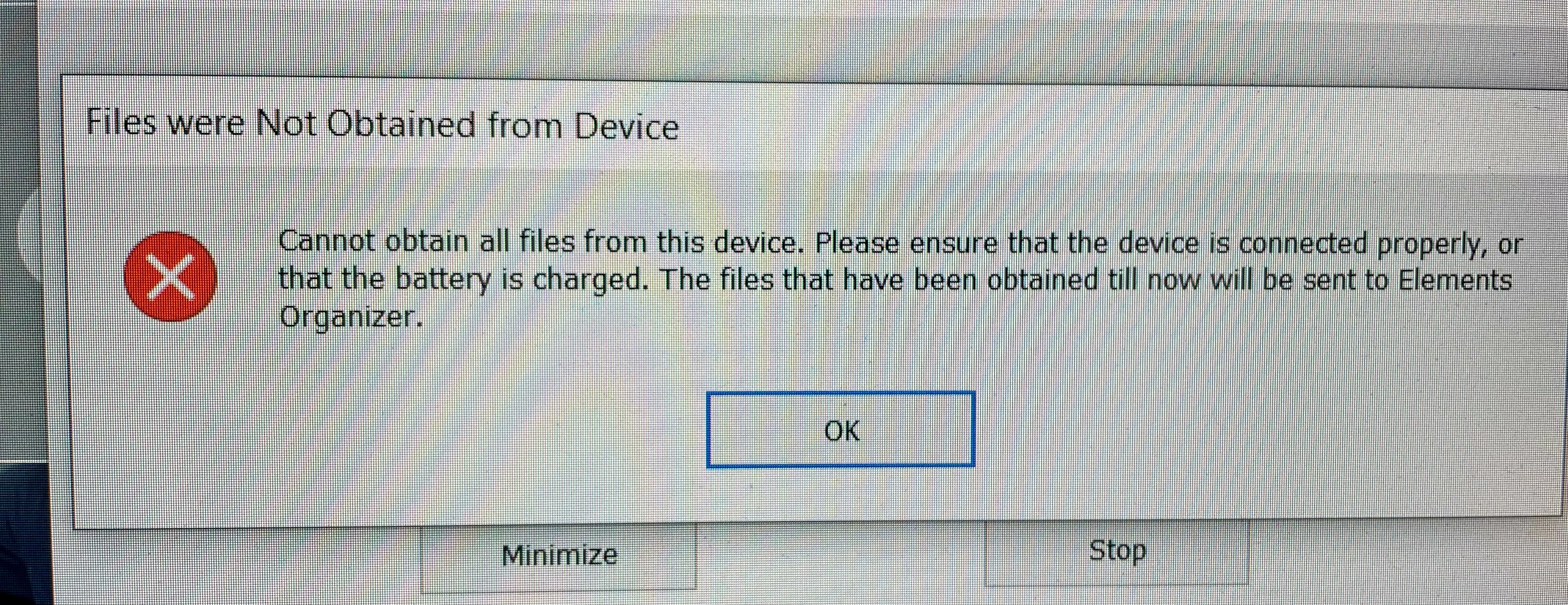 Trying to import my photos and videos from my iPhone and after 15 seconds I get the following error.