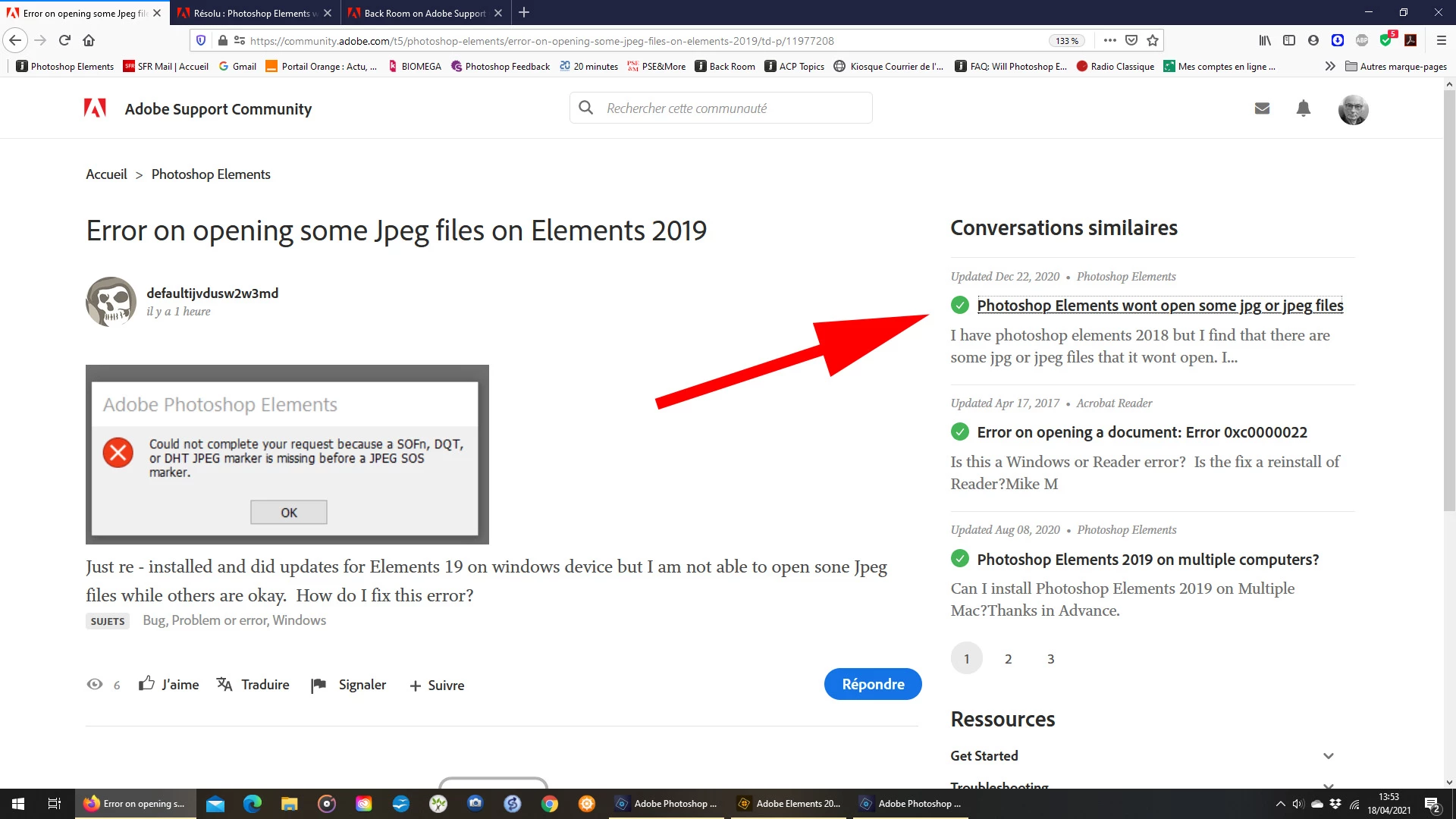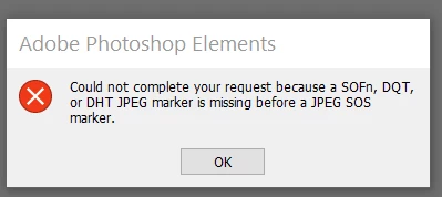 Just re - installed and did updates for Elements 19 on windows device but I am not able to open sone Jpeg files while others are okay.  How do I fix this error?