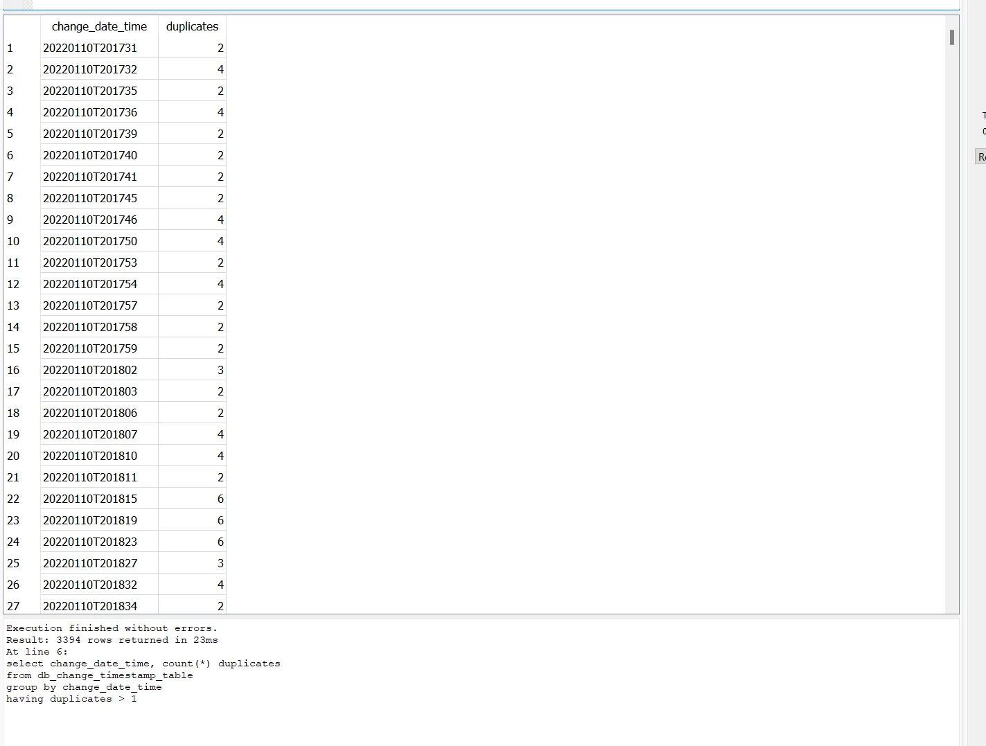 I tried opening the catalog file in DB Browser for SQLite. Looking at the db_change_timestamp_table, there are no duplicate change_ids, so I'm not sure why this error would be happening.