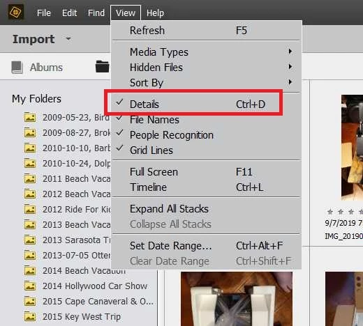 Just upgraded to PSE 2019 and my image data is no longer showing under each image. (file nbr/image type etc)