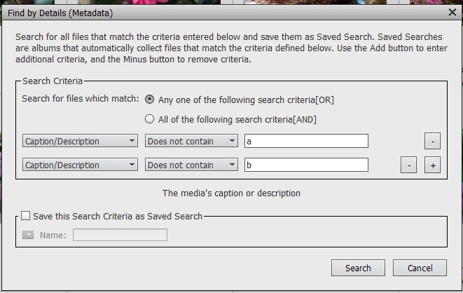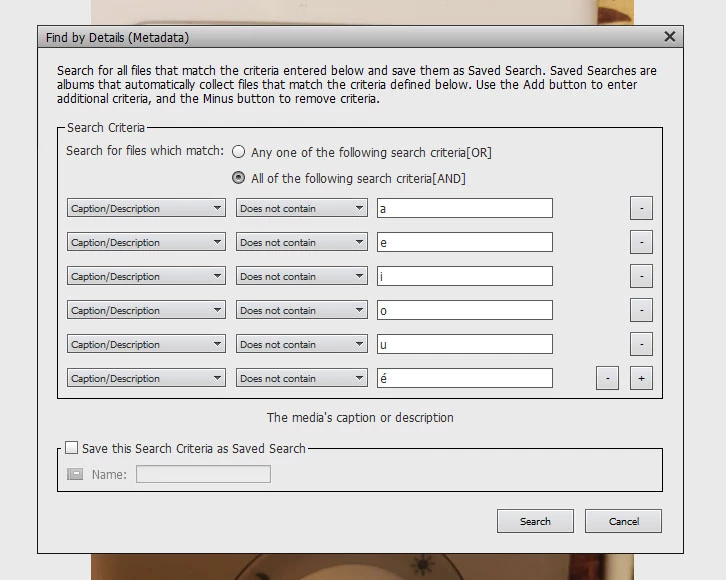 How to find photos in the catalogue that have not had captions added.