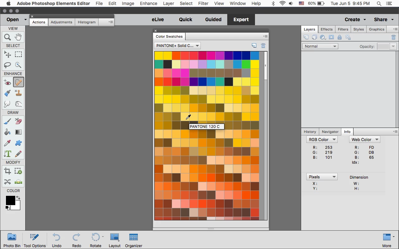 Finding the pantone value in adobe elements