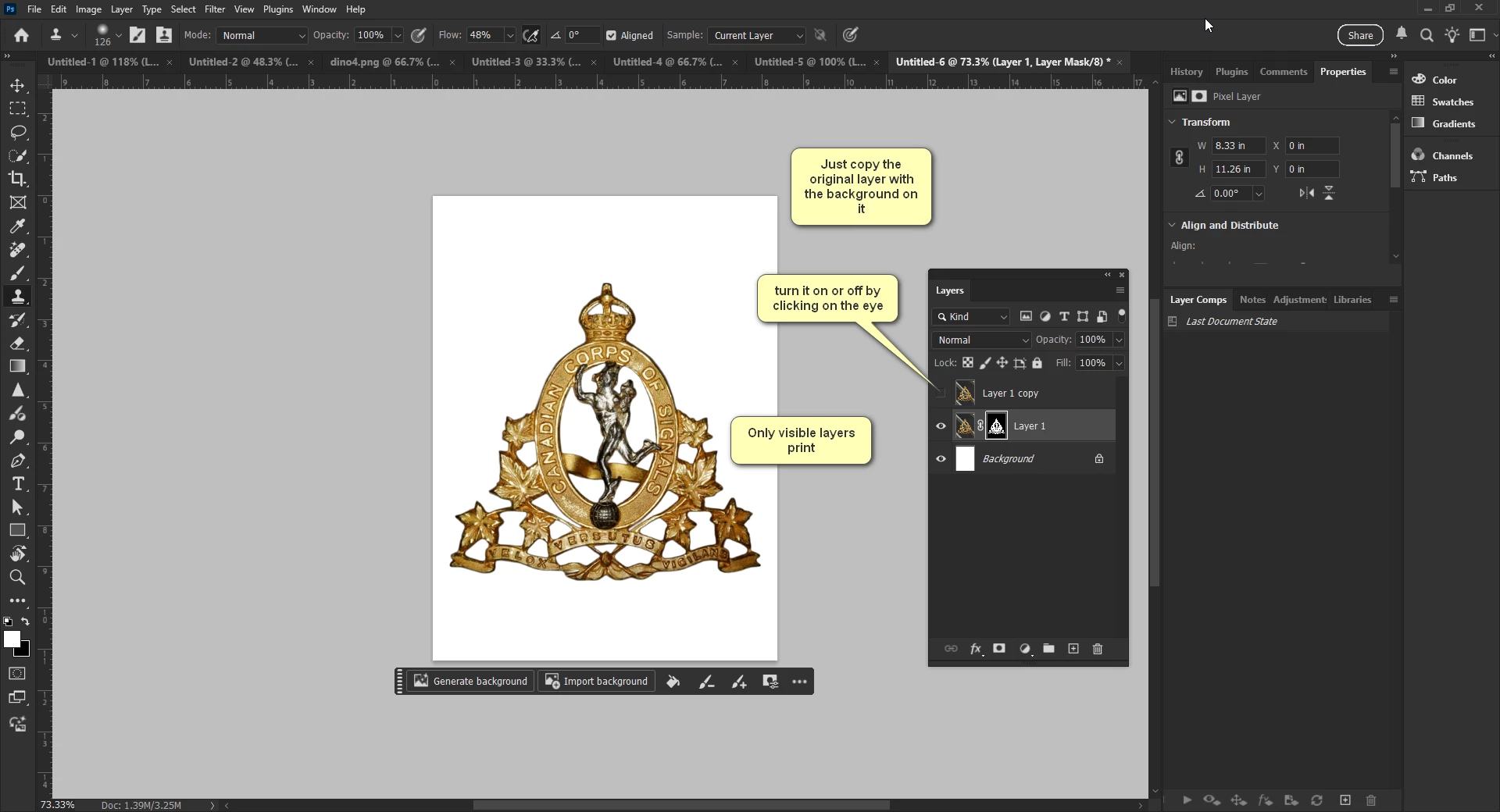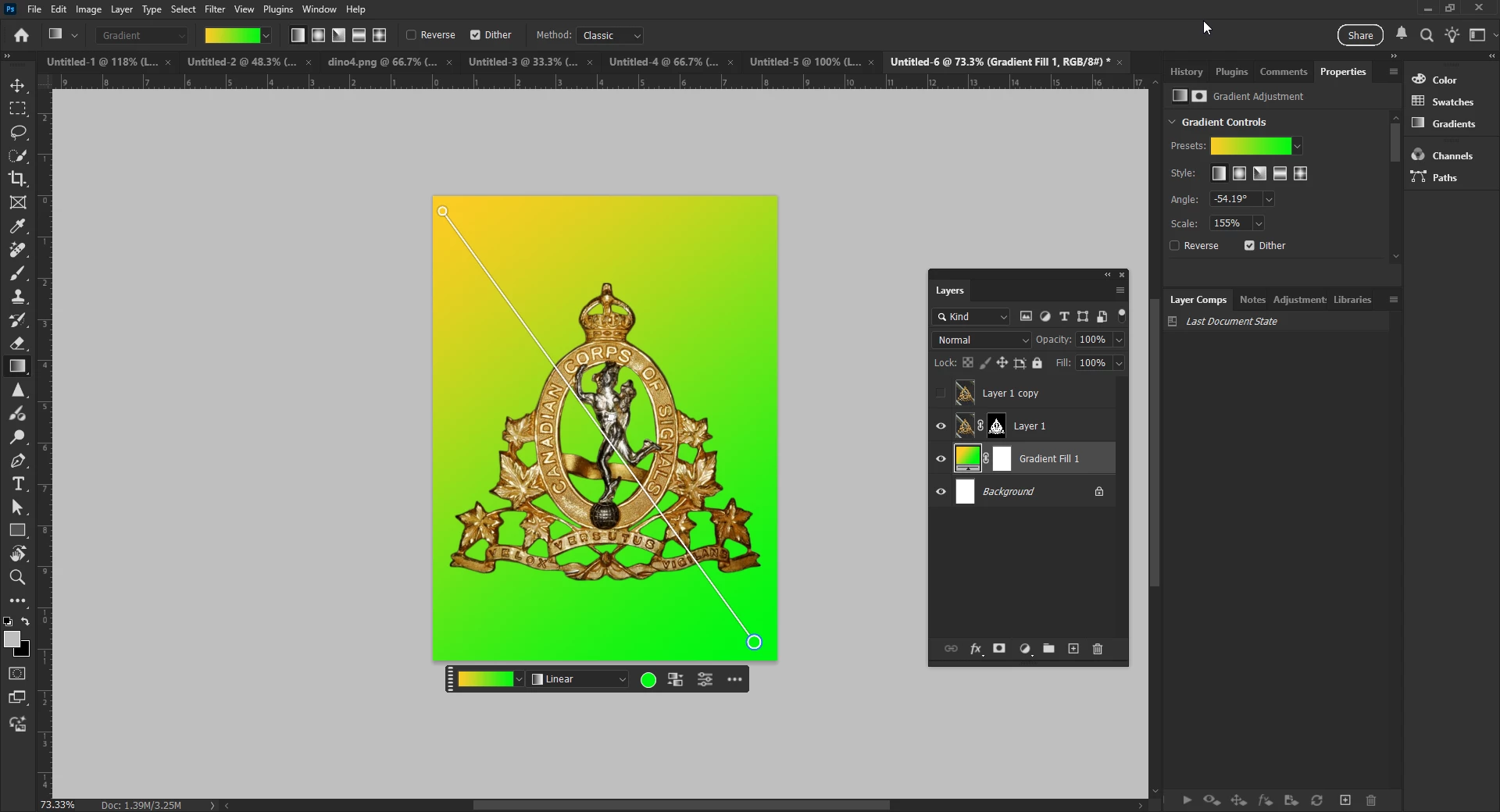 Fixed the remaining areas by copy. paste, transform and clone stamping of the white and light green stripes.