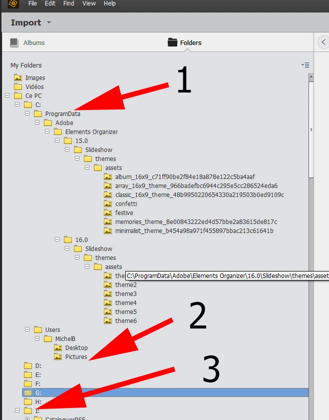 Also - and this is extremely frustrating, it has the pictures folder on twice, once as Pictures - All Photos (Which is where the photos I want in Organizer are) and I use, but it also has this folder again under the complete path - ie This PC, C, users, etc. How do I get rid of this one. The delete folder option is greyed out. I actually tried within the path, ie at the All Photos folder to delete the folder (this level it is not grey) and this then deleted the folder from both places, and all the photos as well.