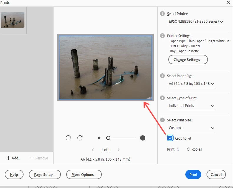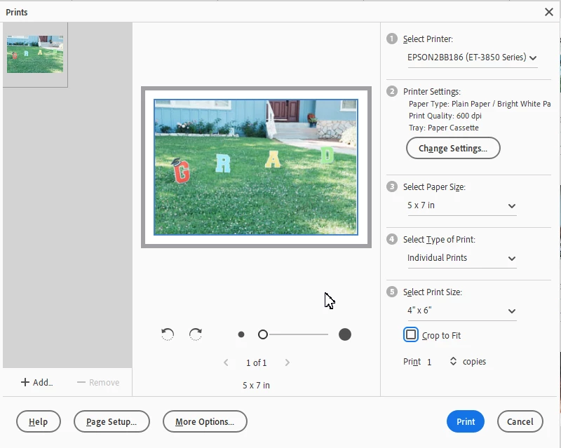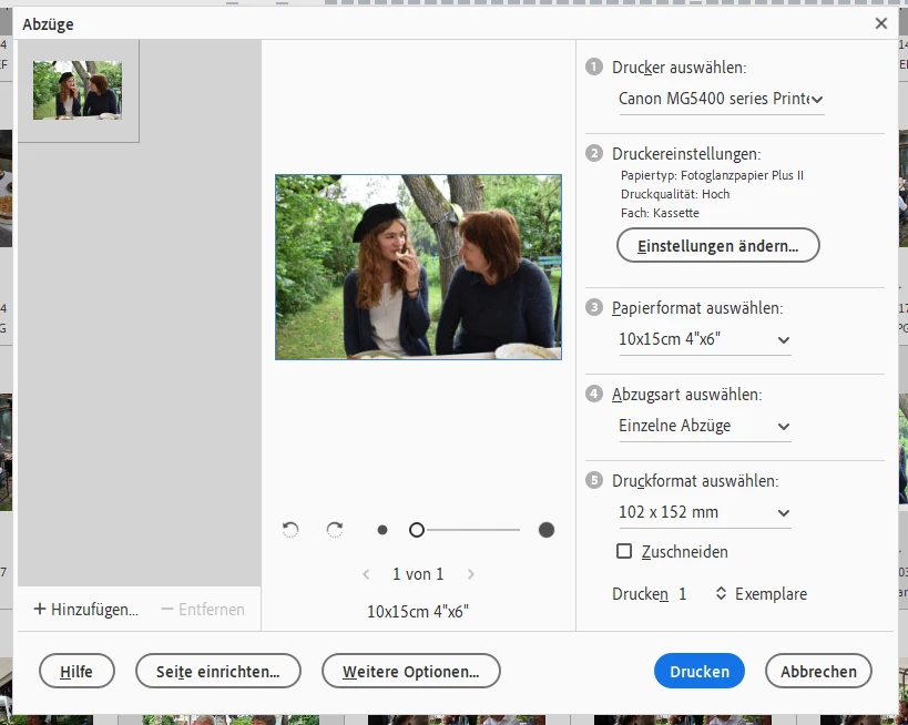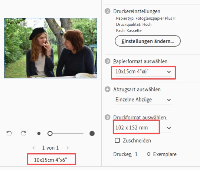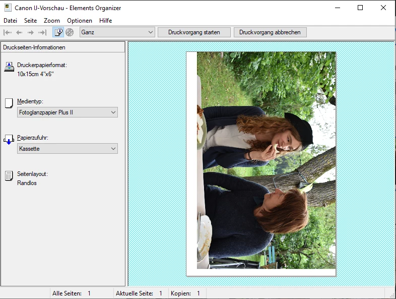 Der Ausdruck über den Editor ist fehlerfrei: Kein Rand, Foto sauber zentriert.