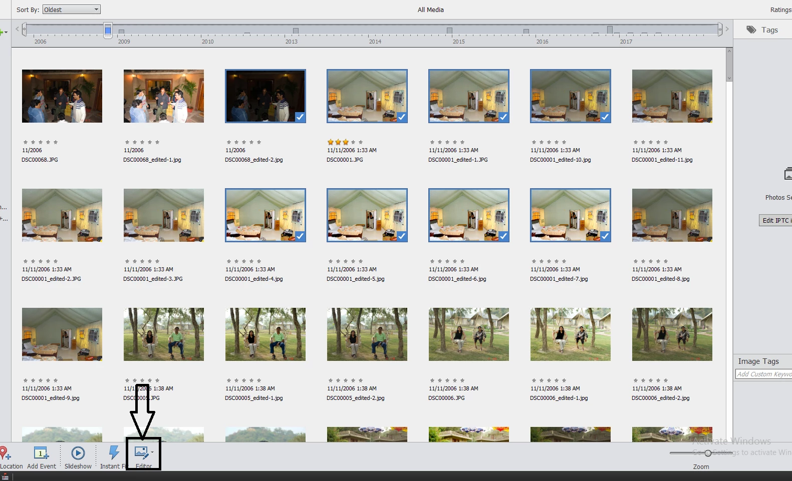Found photos using Organiser. How then import to Elements to Edit ?