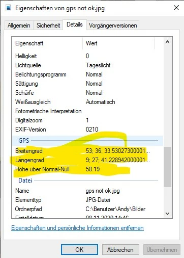 Sometimes the GPS data is not displayed and the pictures are not pinned. The coordinates are available in the file properties of Windows and are also correctly displayed by the Windows Photo app and the geosetter. It works for some pictures, but not for some, although the camera is the same (Huawei Mate 10 mobile phone).