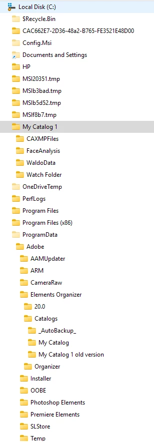 C:\ProgramData\Adobe\Elements Organizer\Catalogs