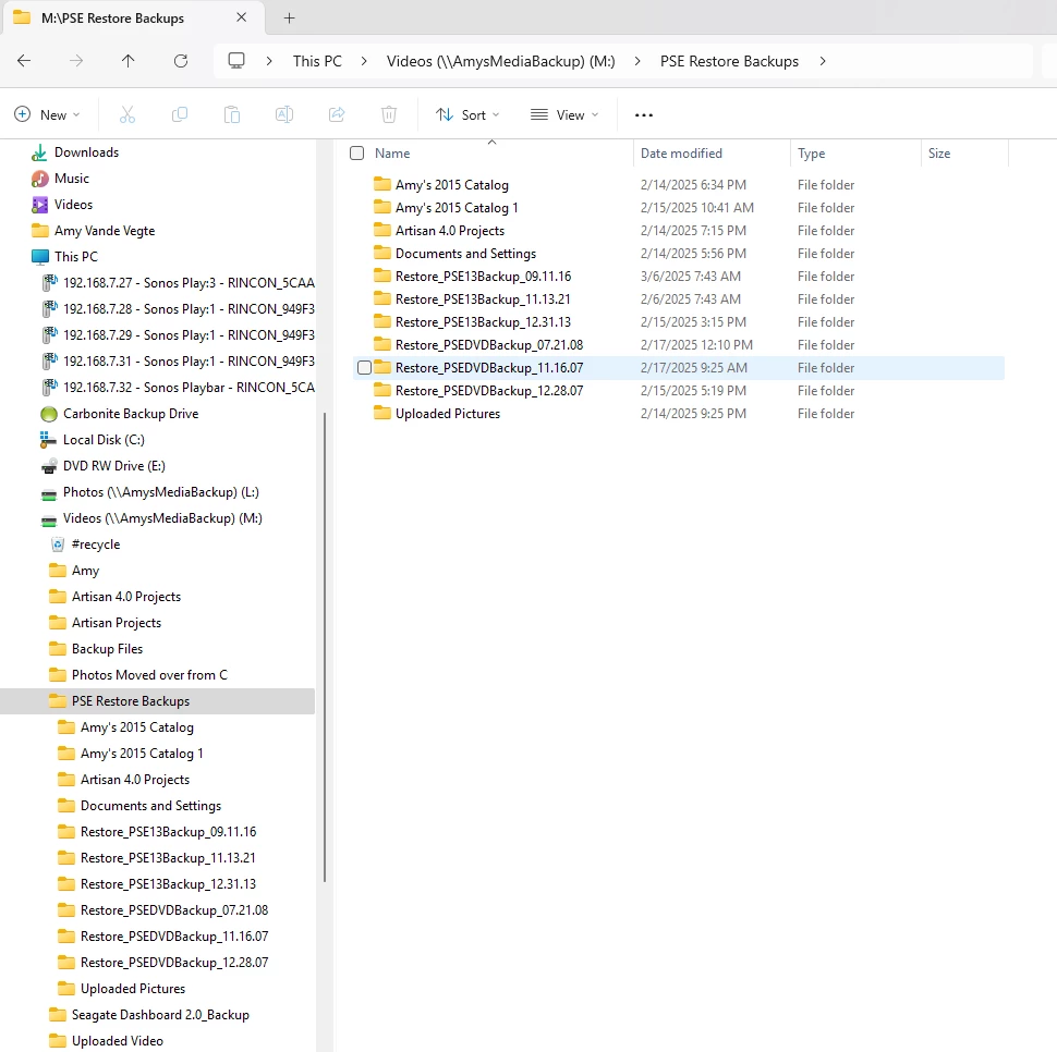 Once that file is copied over, I will delete the 'My Catalog Zip' created on my hard drive. I'll then reopen PSE and use my current 2022 version of Elements to perform the restoration of the catalog, working through the prompts of Restoring ‘My Catalog’ to a New Computer via the burned DVDs I found (and in the order they were burned). This procedure found in this HelpX article you provided. I’ll use the third option listed (restore to new location with original folder structure). These DVDs (backed up on a prior version of Elements) will be converted to the current version of Elements. I’m planning to put this on my external drive (NAS). I have all my photos on my NAS and since they’ll be coming off my DVDs, they will be restored to a different location than what they were originally stored on.
