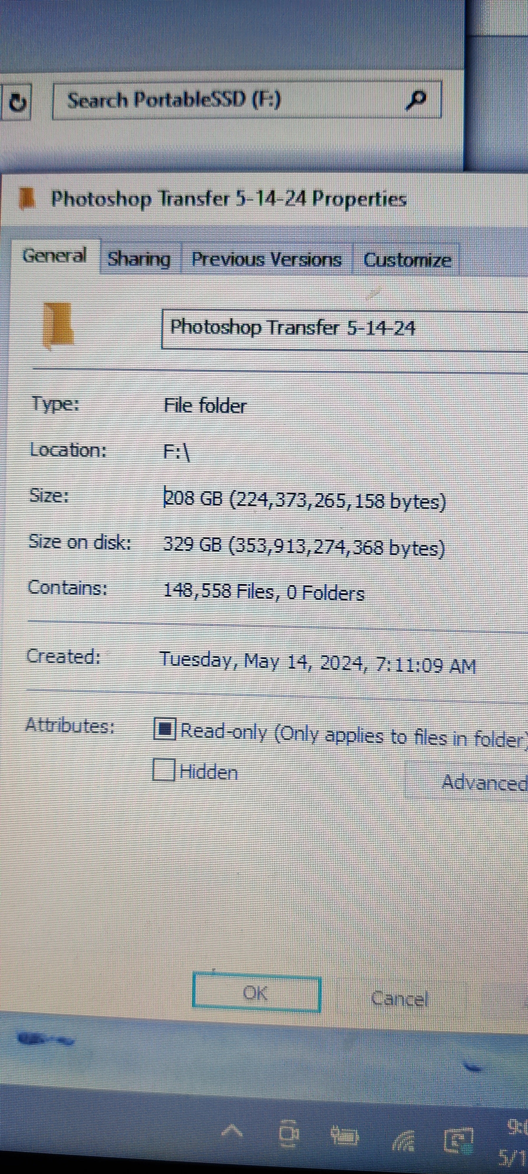 I'm new to the world of Apple Mac laptop. When the SSD is connected and I go to the folder with the backup catalog that I'm trying to restore, click on the "info" for the folder, it takes MANY minutes for it to tell me the size of the folder. Other folders are very quick. I'm wondering if the real problem might be the SanDisk SSD and/or the connection to the Mac may be what's causing it to be so slow (it takes many hours for the catalog to be restored, and then it never does because it fails with a crash of PSE).