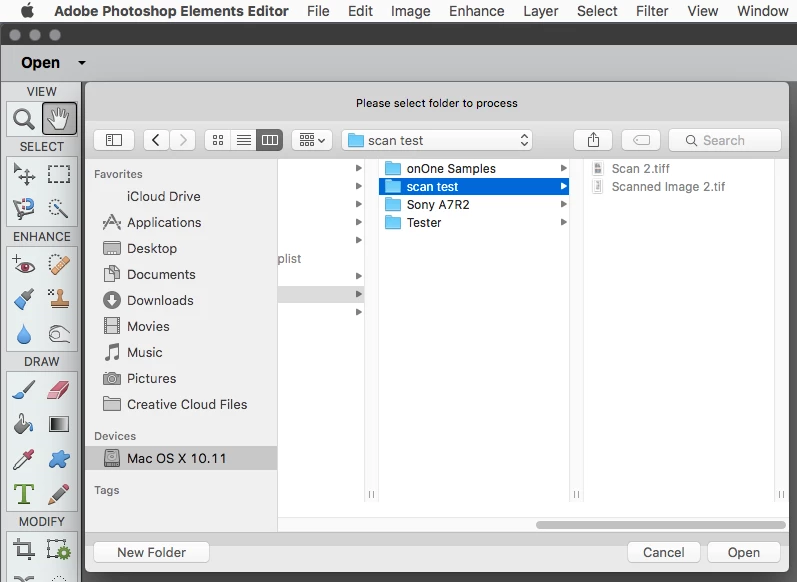 I have PSE14, and I'm only able to divide one scanned page at a time.