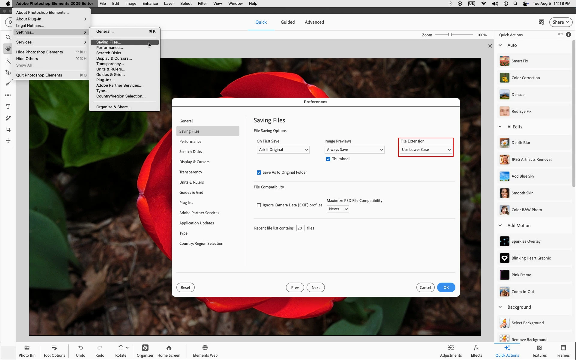 HELP! Elements 2025-MacbookPro “save as” in Editor it is DUPLICATING image due to lowercase JPG name
