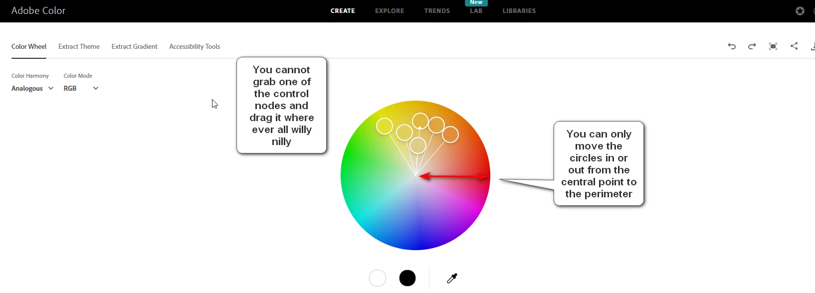 How can I drag the color markers randomly in adobe color wheel? PLEASE HELP!