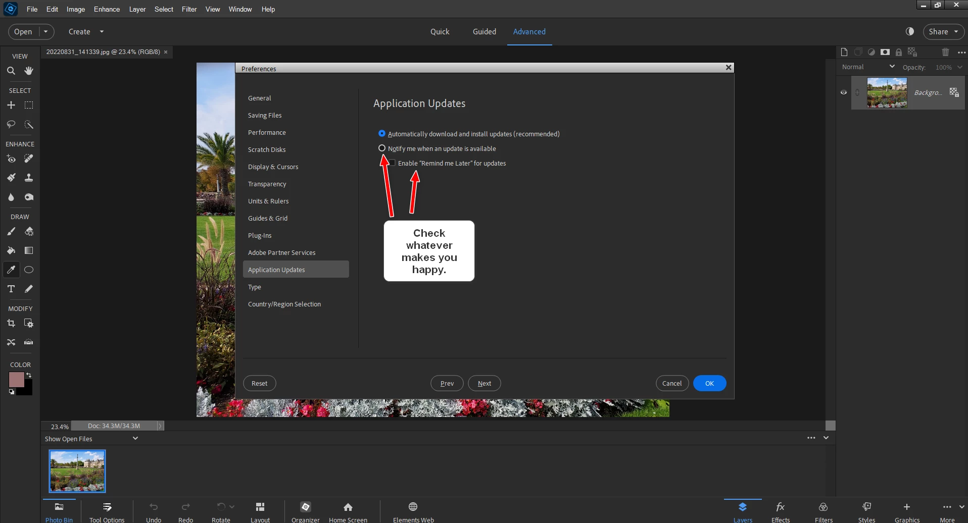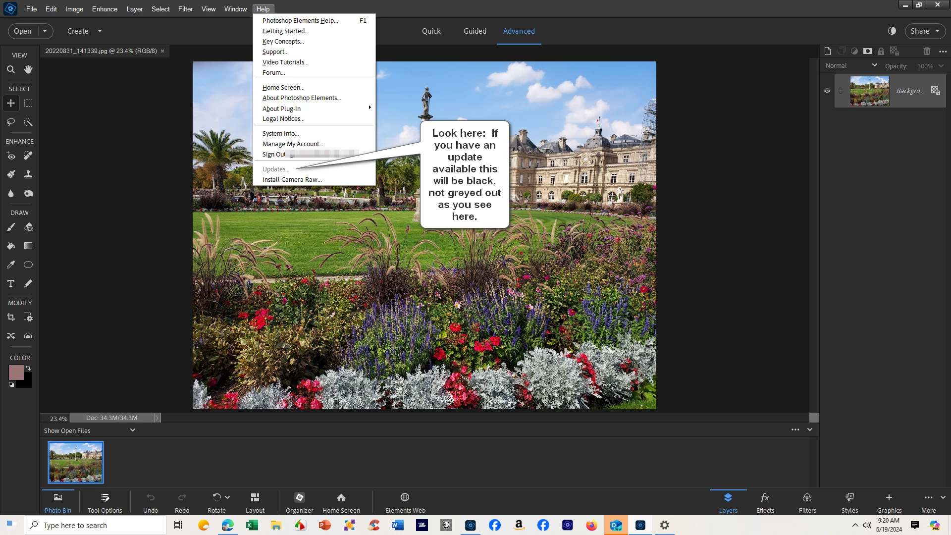 How can i verify Adobe Photoshop Elements 2024 is up to date?