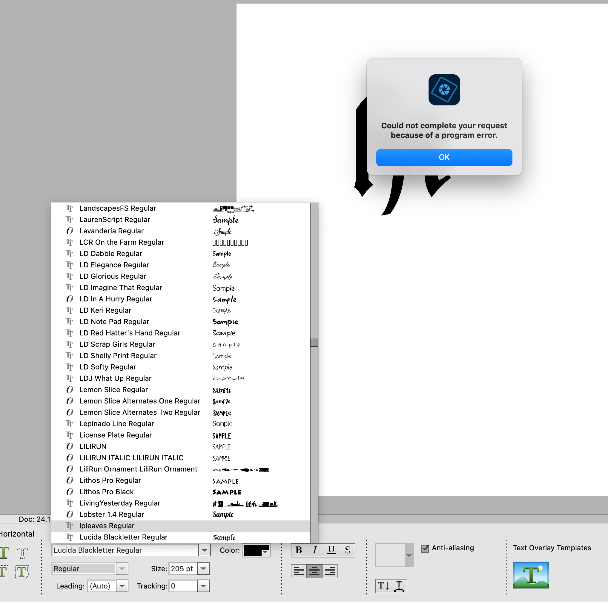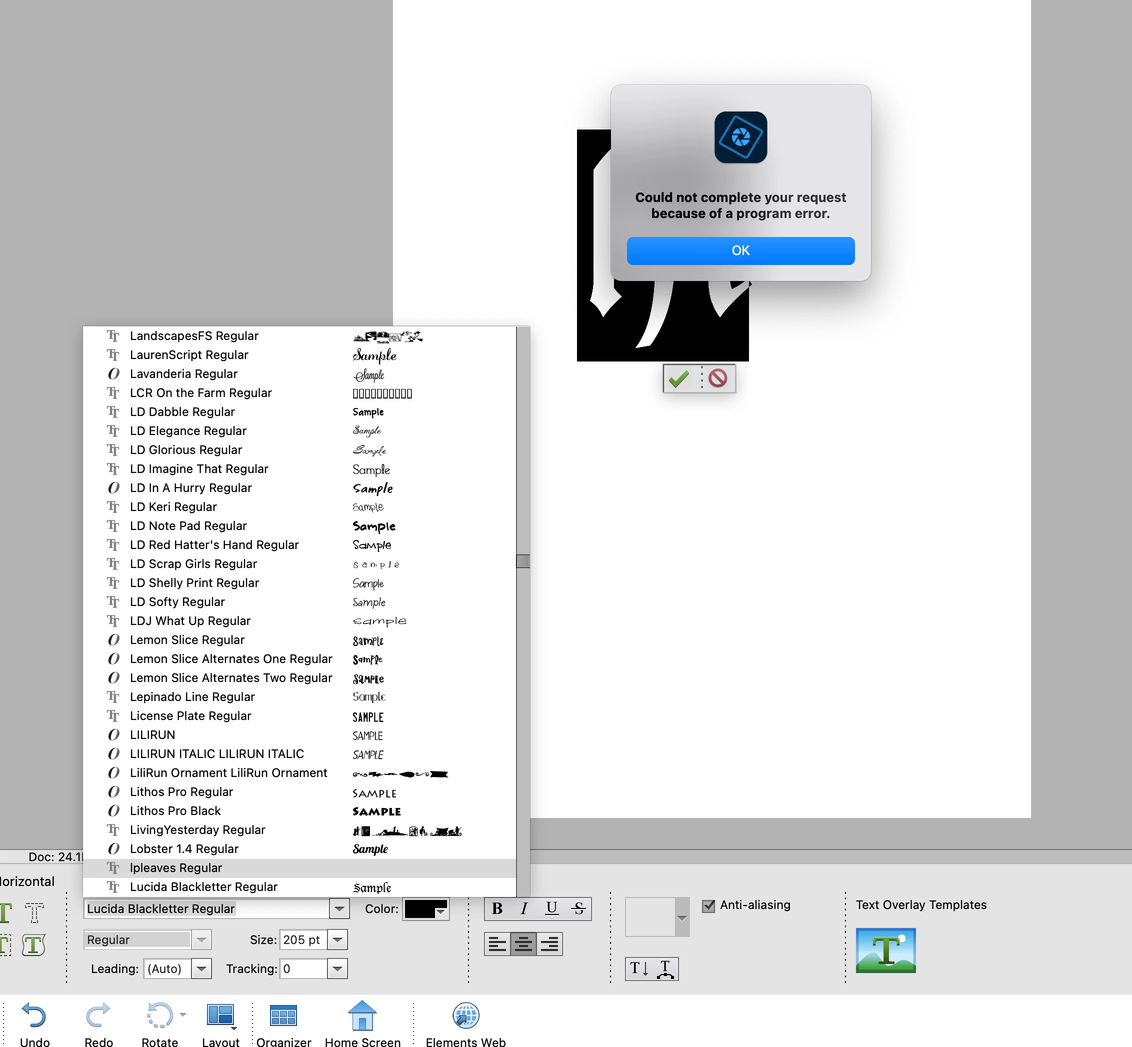 I am trying to get rid of a font name in Photoshop Elements 2023. I have deleted it in my Font Book Manager but it will not delete in Photoshop Elements 2023. I had the same issue in PSE2019. I am tired of error coming up when I scroll through the text manager box.